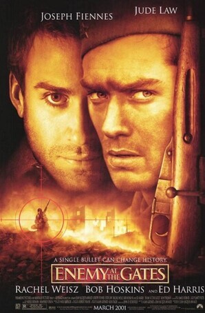 영화 <에너미 엣 더 게이트>는 2001년 03월 16일 미국에서 개봉한 전쟁 영화로, 제2차 세계 대전 중 독일군과 소련군 간의 전투를 다룬 작품이다. 영화는 스노 영워프 전투라는 실제 전투를 기반으로 하고 있으며, 러시아의 저명한 저격수 바시리 사피로프를 주인공으로 삼고 있다. 국내에서는 2001년 05월 19일 개봉하였으며 상영시간은 2시간 10분이며 상영 등급은 15세 이상 관람가 등급을 받았다. 출연한 배우로는 주드 로, 조지프 파인스, 레이철 와이즈, 밥 호스킨스 등이 출연하였다. 바시리는 독일군 저격수 라이히트 하우스와의 치열한 저격 대결에서 승리하기 위해 힘겹게 싸우며 전장에서 살아남으려 노력한다. 독일군은 누구나 바시리를 찾아 죽이기 위해 수배하고 있기 때문에, 바시리는 도시 전체를 뒤지며 생존에 필요한 모든 것을 모으는 등 매우 교활한 전투 기술을 사용한다. 이 영화는 전투 장면과 스토리가 매우 잘 연결되어 있으며, 촬영 장소와 연출이 신중하게 선택되어 전쟁이 어떤 모습으로 진행되는지 명확하게 보여준다. 주연 배우들의 연기 역시 매우 인상적이며, 특히 주인공인 바시리를 연기한 주연 배우 주드 로가 뛰어난 연기력을 보여준다. 전쟁 영화의 대표작 중 하나로 꼽히며, 저격수와의 대결을 중심으로 전장에서의 생존을 그린 인상적인 작품이다.